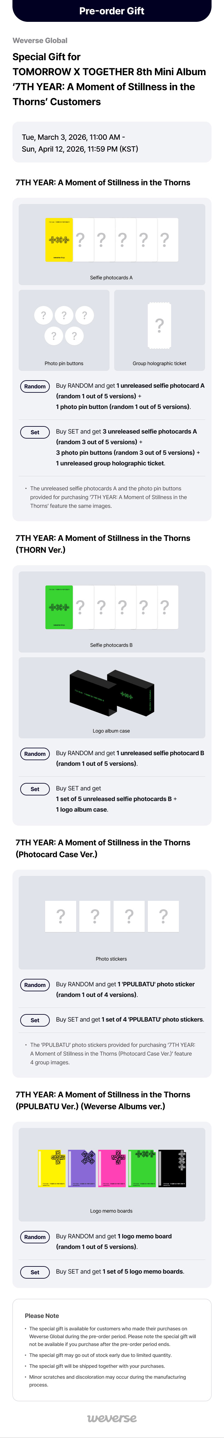 Weverse Shop Purchase Albums with their Special Gifts for Pre-Order.