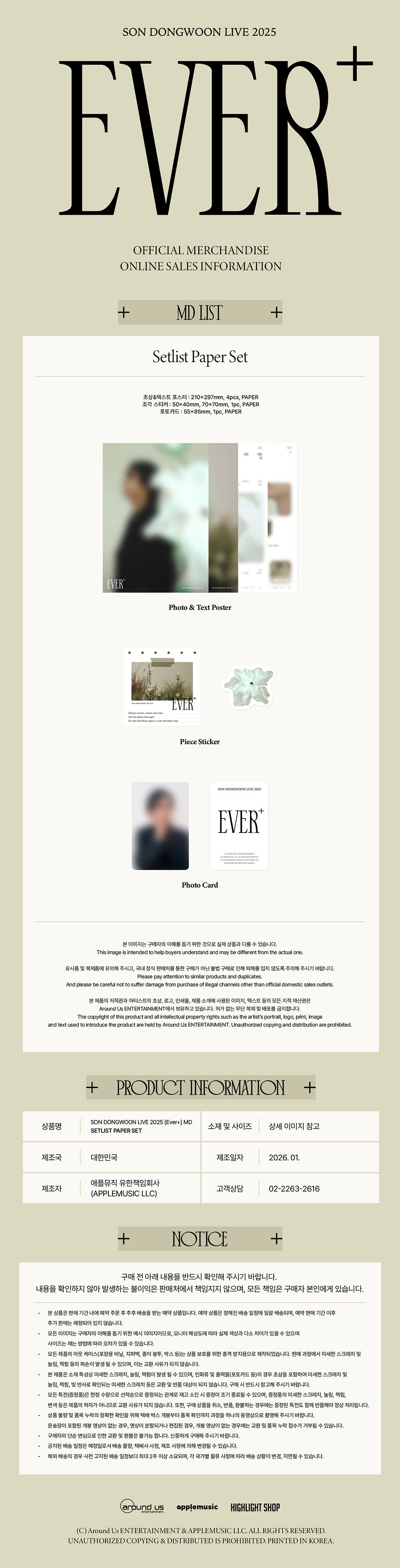 [Pre Order] SON DONGWOON 2025 SOLO CONCERT Goods - SETLIST PAPER SET