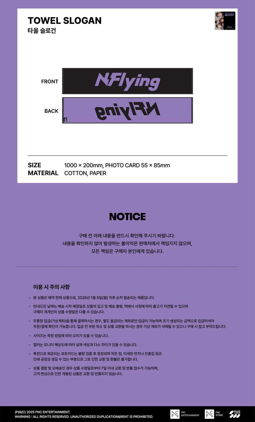[Pre Order] N.Flying &CON4 ENCORE : Let’s Roll &4EVER Goods - TOWEL SLOGAN