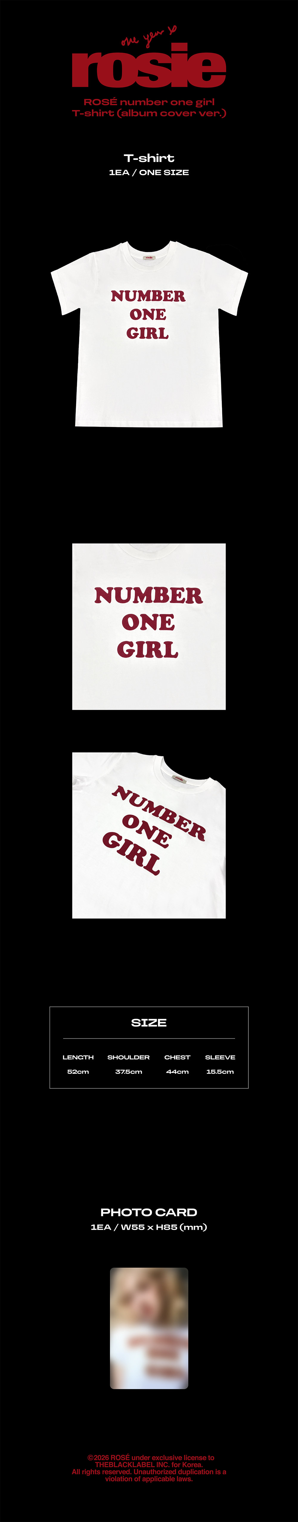 [Pre Order] ROSE rosie Goods - number one girl T-shirt (album cover ver.)