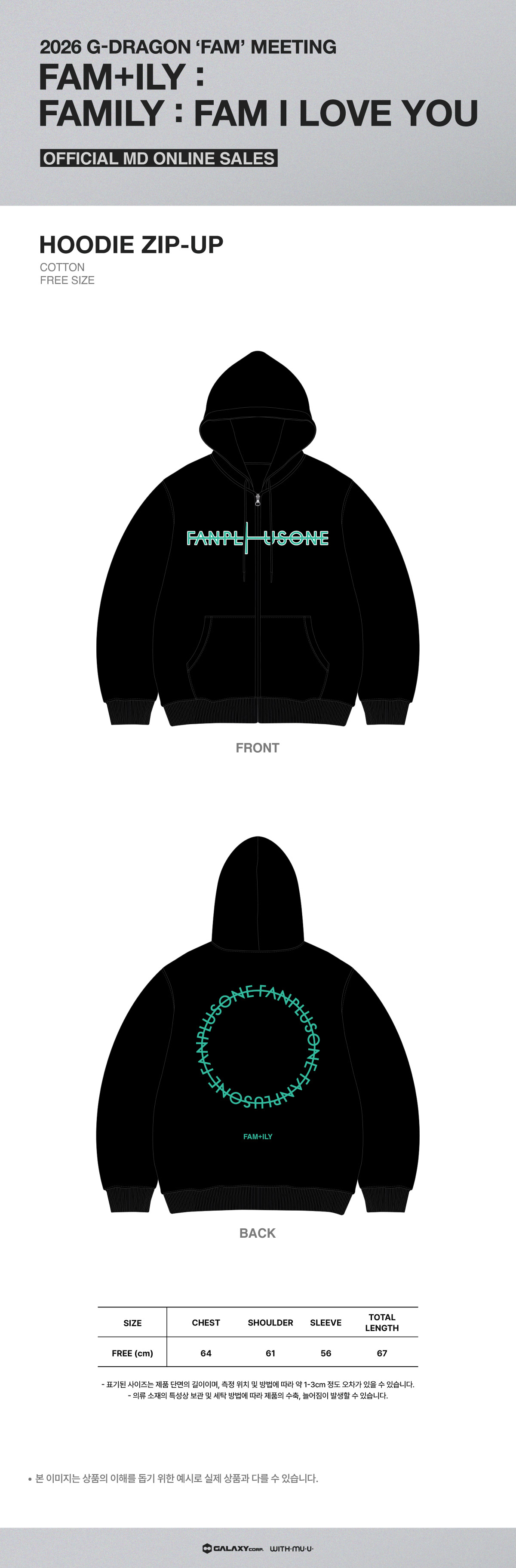 [Pre Order] G-DRAGON FAM+ILY : FAMILY : FAM I LOVE YOU Goods - HOODIE ZIP-UP